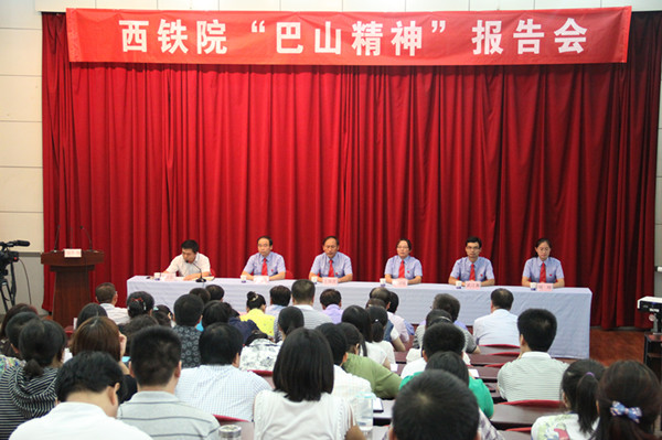 根据学院党的群众路线教育实践活动安排,9月18日下午,学院在阶梯教室举办“巴山精神”报告会。院党委书记安文中,西安铁路局安康工务段党委书记彭有辉、段长刘惠军、总会计师行芸等出席报告会。全院副科以上干部、2013年新入职教职工等近300人参加了报告会。会议由学院党委副书记、纪委书记黄家昌主持。