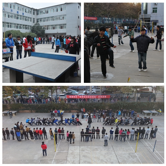 为了切实促进大学生身心体质的健康成长,引导广大学生在清晨、课间、课外活动时间积极参加冬季户外体育锻炼,在“我运动,我快乐”的理念倡导下,临潼校区冬季阳光体育活动于11月18日在校区南操场正式拉开了帷幕。