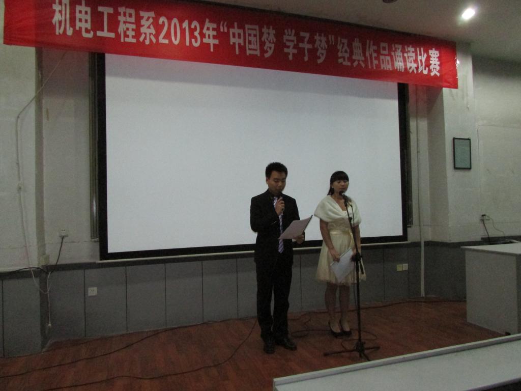 11月7日下午,机电工程系组织250余名师生在教学楼三层多媒体教室进行了“中国梦 学子梦”经典作品诵读比赛决赛。院团委书记仵崇智、系党总支书记张雅兰、系主任代礼前等出席了比赛。