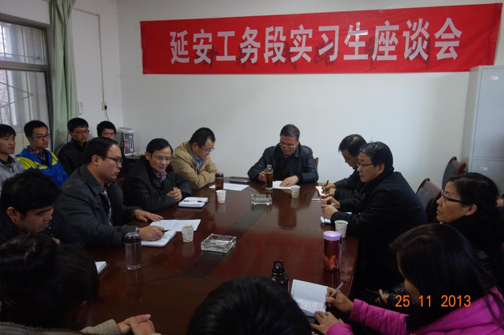 11月25日,延安工务段副段长杨法俊、劳人科长薛林、职教科长王保兵及甘泉车间主任龙荣忠等陪同邓耀斌一行查看了学生宿舍、食堂,召开了在黄陵、富县和甘泉车间顶岗实习的学生的座谈会。段领导和学院领导询问了学生现场实习安排、集训和考证、实习过程中的困难等情况,并解答了学生们的一些疑惑。邓耀斌感谢延安工务段对贝博官网实习学生的悉心照顾与安排,转告了学院领导对段领导的感谢。