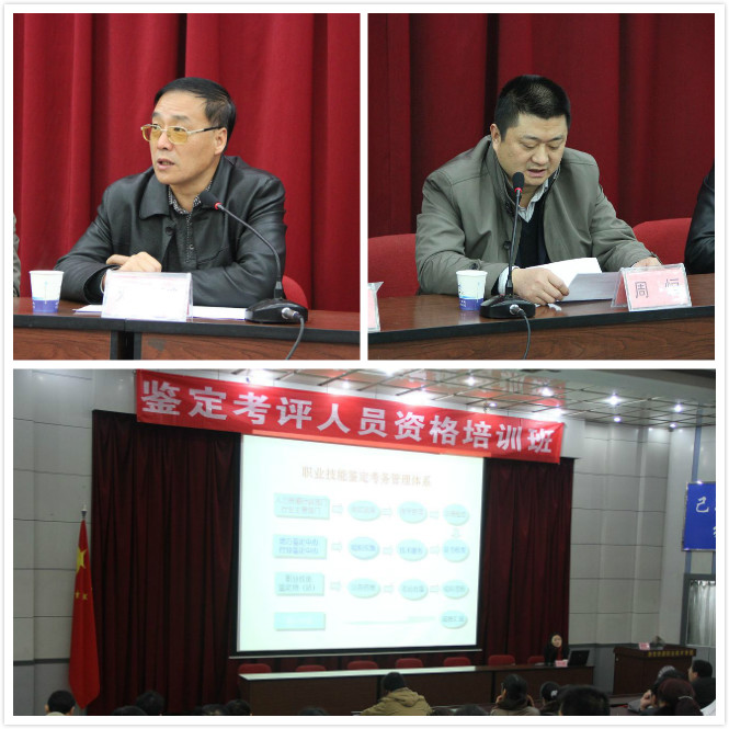 在开班致辞中,周恒重点强调了考评员培训的重要意义,提出考评员培训是进一步加强职业技能鉴定考评人员队伍建设,提高职业技能鉴定工作质量的保证。邓耀斌简要介绍了学院鉴定工作的整体情况,并对参加培训的教师提出了“集中精神,认真学习”、“加强交流,学以致用”、“严于待已,遵守纪律”等三点要求。