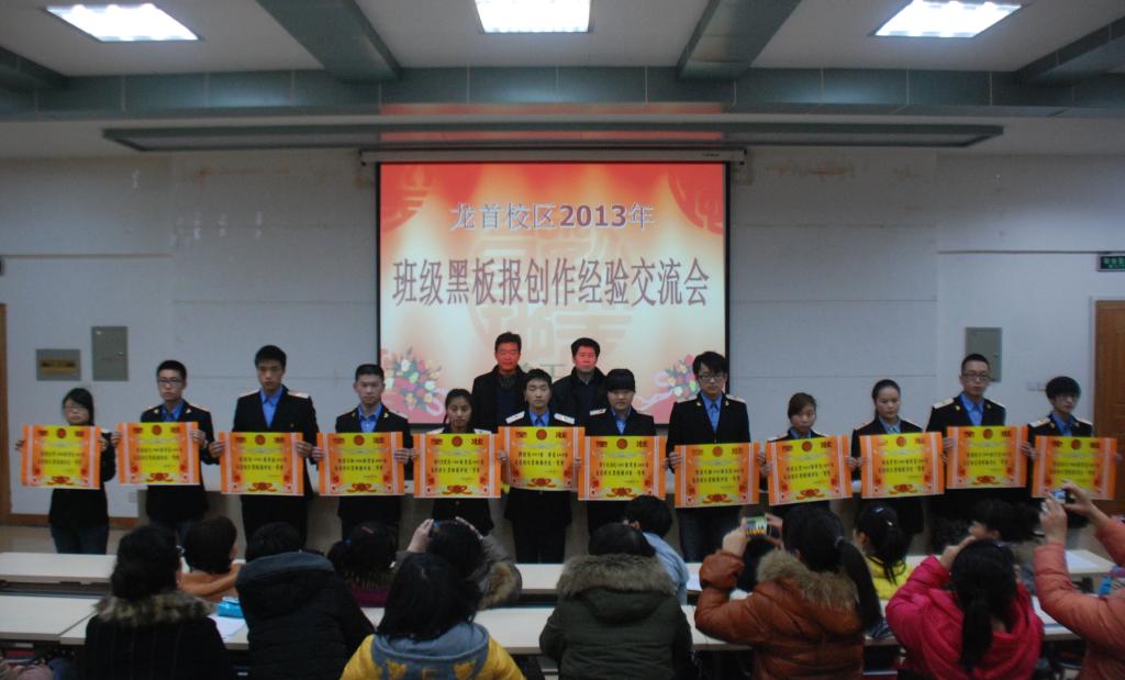 为鼓励原创文化,表彰一年来优秀班级黑板报创作集体,1月6日下午,龙首校区召开2013年度班级黑板报创作经验交流会。校区主任吴领合、学工办全体辅导员、班主任及各班板报创作小组成员100余人参加了会议,会议由校区学工办主任高阿联主持。