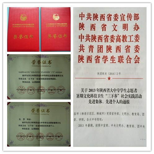 近日,由陕西省委宣传部、陕西省文明办、陕西省委高教工委、共青团陕西省委、陕西省学生联合会向有关部门联合发出《关于2013年陕西省大中专学生志愿者暑期文化科技卫生“三下乡”社会实践活动先进集体、先进个人的通报》(陕团联发[2014]2号)。本次表彰中由贝博官网组织的“走进深山 坚守行业”赴巴山服务团获得2013年陕西省大中专学生志愿者暑期文化科技卫生“三下乡”社会实践活动优秀团队。贝博官网牵引动力系学生张攀获得2013年陕西省大中专学生志愿者暑期文化科技卫生“三下乡”社会实践活动先进个人。