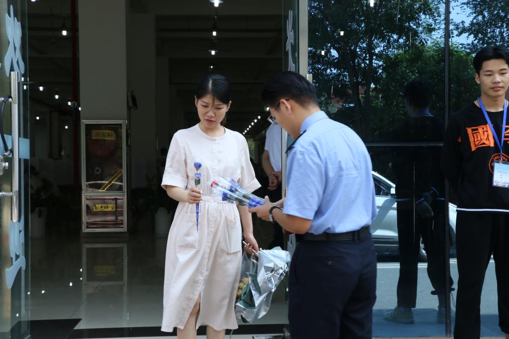 港务校区的同学们在学校餐厅门口挂好横幅,准备好鲜花和贺卡,以饱满的精神状态迎接每一位老师。同学们为老师送上精心准备的鲜花和提前写好的祝福贺卡,道一声“老师,节日快乐!”一枝鲜花谢师恩,一声祝福表敬重,礼物虽然质朴,言语虽然简单,其中却包含着同学们对老师深深的敬意与感谢。广播站播放了“教师节——想对老师说的话”专栏节目,共收集到来自各二级学院500多名同学对老师的祝福语,并择优在教师节当天进行了播读。