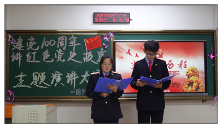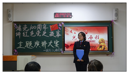 为了加深国际交通学院的学生们对党史的认识,了解中国共产党的光辉历程,更好的从一百年的党史发展中吸取智慧和力量,使学生们切身实际的学习党史,了解中国共产党。3月17日,国际交通学院隆重举行了“建党一百周年,讲红色党史故事”主题演讲比赛。参加本次演讲比赛活动的评委有综合办主任顾天胜,辅导员赵箭、王苗苗,班主任朱晨晨、王汝云、魏倩,为学生们的朗诵公平公正地评分。经过一天的初赛,共选出了十个节目进入最终的决赛。