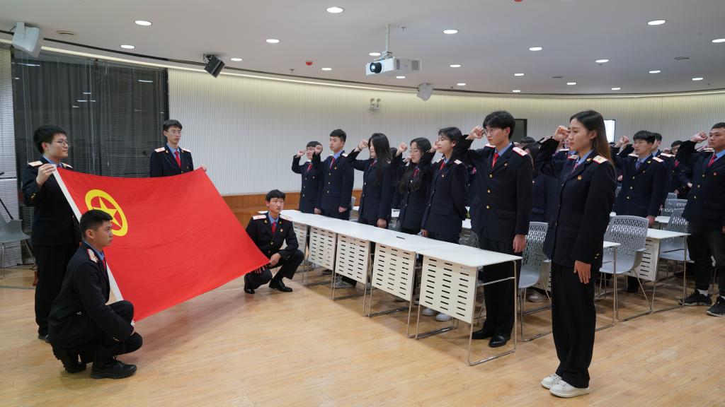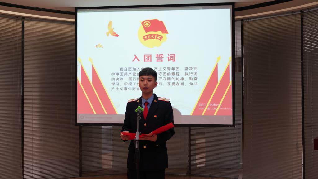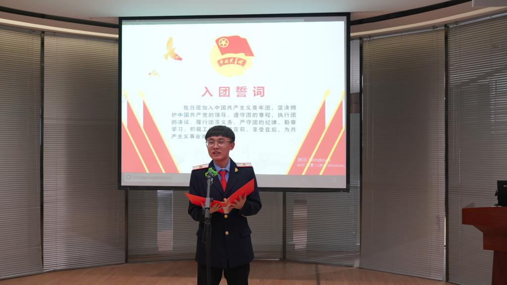 “我志愿加入中国共产主义青年团,坚决拥护中国共产党的领导,遵守团的章程,执行团的决议,履行团员义务......”院团委在学生中举行了重温入团誓词,学员们面对鲜艳的团旗,右手握拳,手举过肩,用宏亮的声音庄严宣誓,以这样的形式给学生们上了一堂生动的思想教育课,增强了广大团员的社会责任感和使命感。