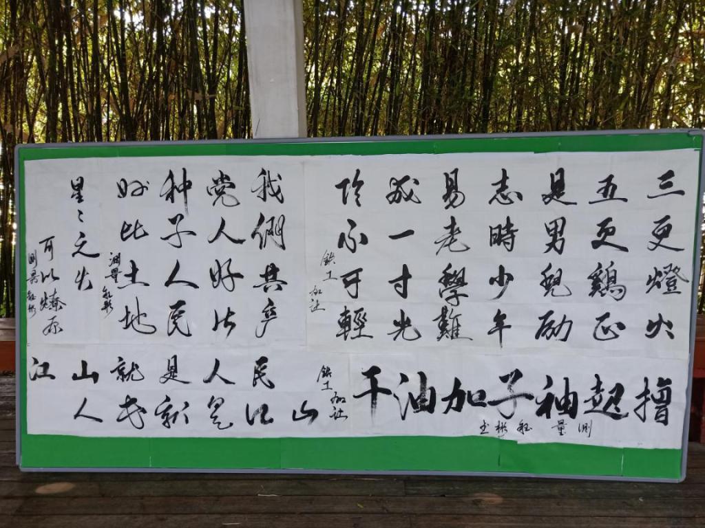 本次活动展出作品共149幅,其中书法作品有象形文、甲骨文、篆书、草书、行草书、行楷书和楷书,绘画作品有简洁朴素的素描、线条工整细密敷设重色的工笔重彩画、有声有色的水墨丹青中国画等,内容则涵盖了诗经、唐诗、宋词、毛泽东诗句、党章、名言警句等,这些作品风格各异,异彩纷呈,既体现了校区学生深厚的书写艺术、文化功底和丰富创造力,也展现了莘莘学子积极向上、锐意进取的精神风貌。