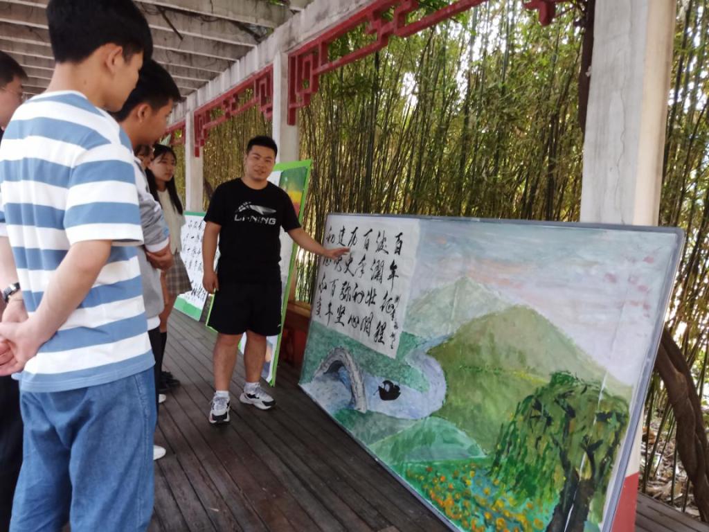 其中,团委张旭超同学给大家讲解了他的水彩画作品《绿水青山处 孤舟向春行》,这幅作品创作背景是2021年中国共产党百年华诞,百年征程波澜壮阔,百年初心历史弥坚。从上海石库门到嘉兴南湖,一艘小小红船承载着人们的重托、民族希望,越过急流险滩,穿过惊涛骇浪,成为领航中国行稳致远的巍巍巨轮。作品中让大家感受到,有浅春登高望远,潇洒俊逸,大气磅礴之势,温婉悠然,如沐春光之景;有数枝花香朵朵沁人心脾,醉红夕阳之情。
