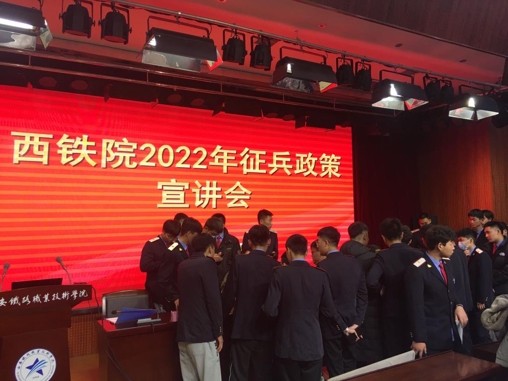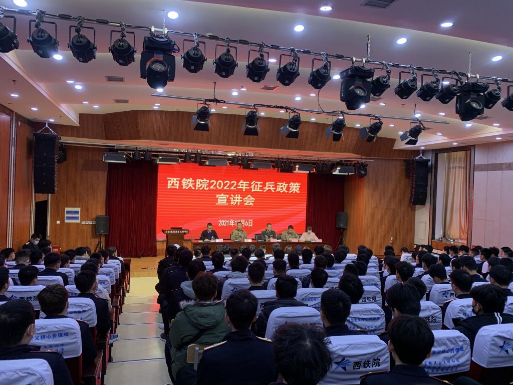 12月6日,学院保卫处(武装部)会同灞桥区武装部,在港务校区办公楼一楼报告厅,组织召开了2022年春季征兵政策宣传、现场咨询会,参会人员有灞桥区武装部部长刘志光、政工科科长侯兆洋帆、军事科参谋张宁,港务校区各二级学院辅导员、班主任、学生260余人。