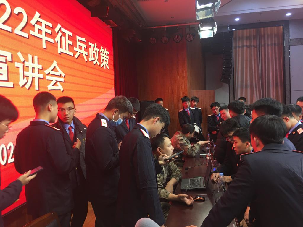 张宁作宣传动员,强调了当前征兵强军、国防建设的背景与意义,习近平总书记曾讲到,国家需要一支军队、来有效应对复杂形势。同时,结合自己在部队上的亲身经历为学生们讲述感悟“和平年代、岁月静好、是因为有人守护”,引发了学生们的共鸣。接下来,从建章立制、落实责任、激励机制,征兵要求、体检政审、入伍发展、学籍保留、退役复学、就业创业、学费资助、补偿贷款政策等方面,为与会师生作了详细讲述。