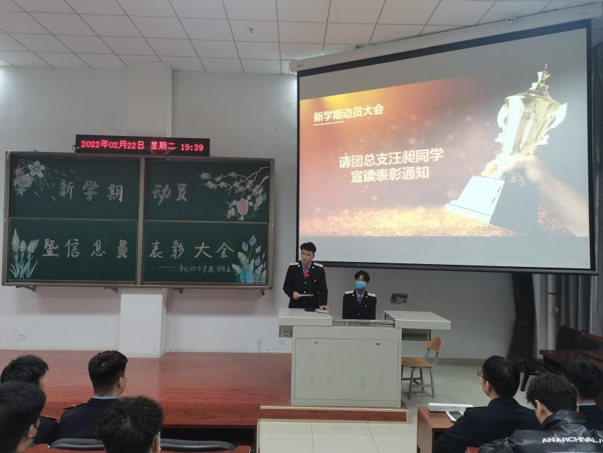 愉快祥和的春节假期已然向我们道别,充实有趣的校园生活正向我们招手。牵引动力学院于2月22日晚在105阶梯教室举办了新学期动员大会暨信息员表彰大会。在这个特殊且充满“爱”的日子里,不仅对上学期勤奋工作的各位信息员进行了表彰,同时号召各位同学在新学期重新出发,用崭新的面貌开始新的征程。