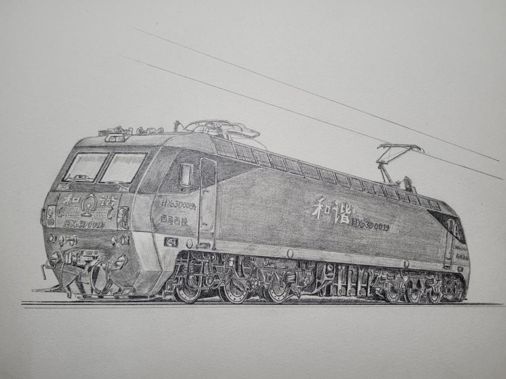 大家按照杨怡珊同学介绍的绘画透视原理,按照“近大远小”原则合理布置画面比例,画出大体结构,然后填充每一部分的内容,深入刻画机车的细节部件,形成完整轮廓与构图,调整光影色调,最后完成创作。