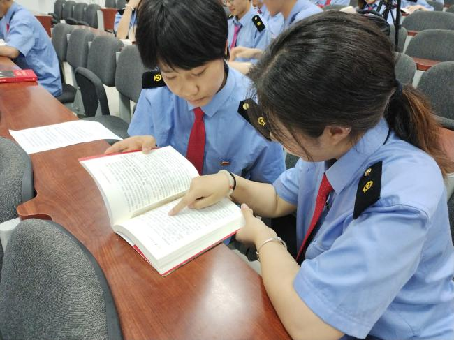 在读书感悟分享环节,向文菊、强艺涓、李炳楠等同学就自身的心得体会与同学们进行了交流。“看习近平总书记的嘱咐教诲,了解中国国情,认清国际形势,为了中国的伟大理想,突现中华民族伟大复兴,树立远大志向在本职岗位上发光发热!”来自机车车辆制造2101班的强艺涓同学在阅读完书籍后有感而发。“把志向牢牢地树立起来,踏踏实实地体现在本职岗位上!”她借用书中的话语鼓励同学们在未来的就业岗位上执着专注、精益求精、一丝不苟、追求卓越,做一个时代远航巨轮的基石,一颗永不生锈的“螺丝钉”。