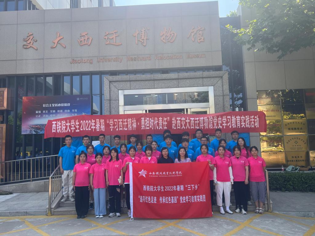 按照学院团委关于做好2022年暑期校、院两级社会实践团队工作的统一安排,7月1日,在喜迎建党101周年之际,学院2022年第一支暑期社会实践团的37名优秀学生代表在指导老师郭瑾、李璇的带领下赴西安交通大学探寻西迁精神。