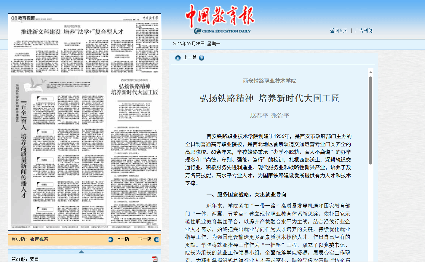 为适应新时期中国铁路现代化发展的要求,特别是西部地区对高技能、高水平专业性人才的迫切需求,学院以提升学生职业基本素养为主线,认真落实立德树人根本任务,搭建“内外结合、工学递进”实训构架,强化认识实习、深化现代学徒制和“1+X”改革试点、创新订单化、“2+1”校企联合培养等双主体育人模式,前置学生就业关口,增加学生就业机会。同时,学院紧密对接产业链,立足岗位需求,结合工作过程,对照职业标准联合企业专家分工协作,共建共享优质教育教学资源,联合开发了30余个铁路特有工种培训教材和相关教辅资源,并按照行业作业标准应用数字化模拟场景,开展真实工作任务,开展单岗或多岗位协同训练,实施岗位规范流程教学,实现人才培养与社会需求的匹配,人才培养质量大幅提升。