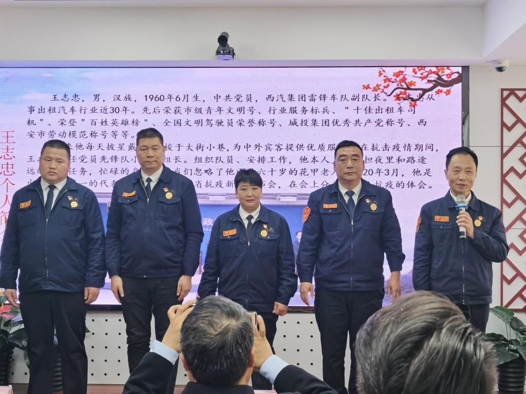大家首先参观了西汽集团品牌车队雷锋车队,寒风凛冽中5名雷锋车队司机站在各自出租车前整齐亮相,有雷锋车队副队长、西安市劳模王志忠,有“中国好人”王锋利,有“西安最美的姐”李永兰,也有爱心车厢发起人,十大“感动交通人物”刘卫,还有西安市出租汽车行业服务标兵董恒浩等行业模范人物,西汽集团工会办公室主任窦琳娜将他们的先进事迹一一讲述。