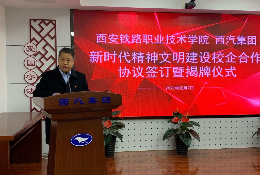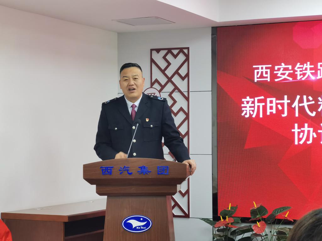 为进一步提升学生的思想道德修养和社会责任感,培养学生的创新精神、实践能力,1月7日上午,马克思主义学院组织全体思政课教师和“习近平新时代中国特色社会主义思想学习社”优秀学员代表走进西安市出租汽车集团有限公司,开展“新时代精神文明建设校企合作”共建活动。西汽集团党委书记、董事长苏锋及部分西汽集团领导、马克思主义学院院长景延鹏参加了此次活动。