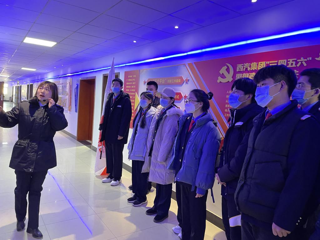 仪式结束后,师生代表在西汽集团工会办公室主任窦琳娜和员工崔灿灿的讲解下参观了西汽集团党员活动室、文化长廊、集团发展史馆、劳模创新工作室、客户服务中心,实地体验了西汽集团“三四五六”政治思想工作法、ABC企业管理法、爱心车厢服务法等品牌在企业中的示范引领作用。