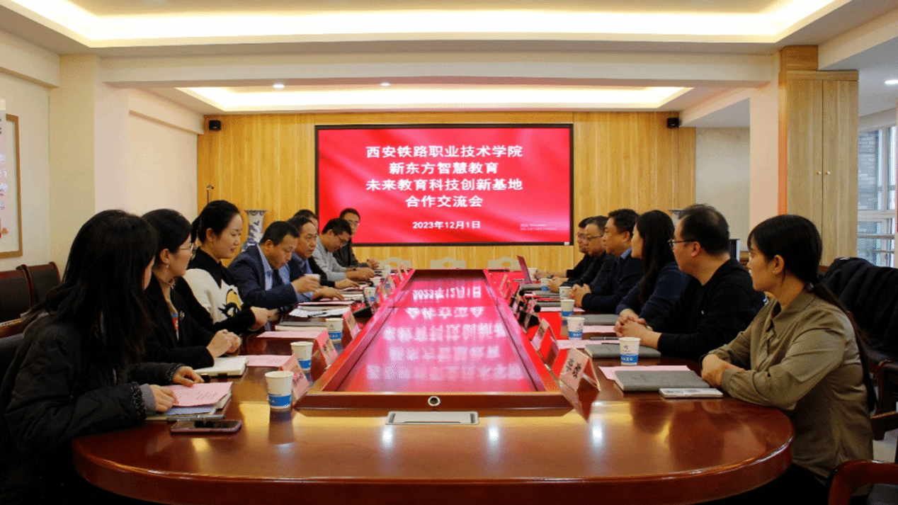 贝博官网校企合作处处长张治平、基础部主任孙明魁、综合管理处副处长刘林、基础部副主任张博雅,新东方教育事业部副总经理刘斌立,未来教育科技创新基地白澎涛等参加会议。