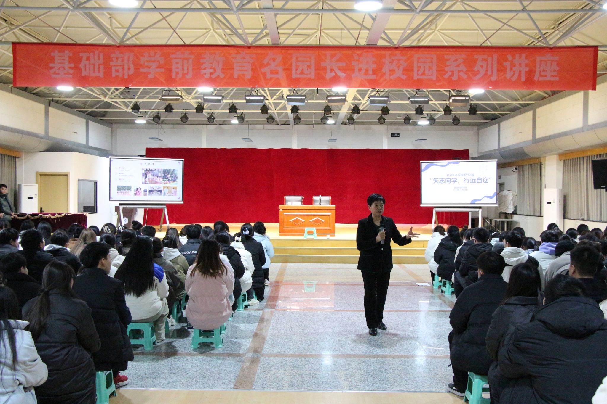 12月21日下午,我市著名女企业家、全国三八红旗手“红烛奖”“五一劳动奖章”获得者、学前教育领域突出贡献人物米莹莅临基础部,开展学前教育名园长进校园活动。基础部主任孙明魁、副主任张博雅,学前教育专业全体教师参加。
