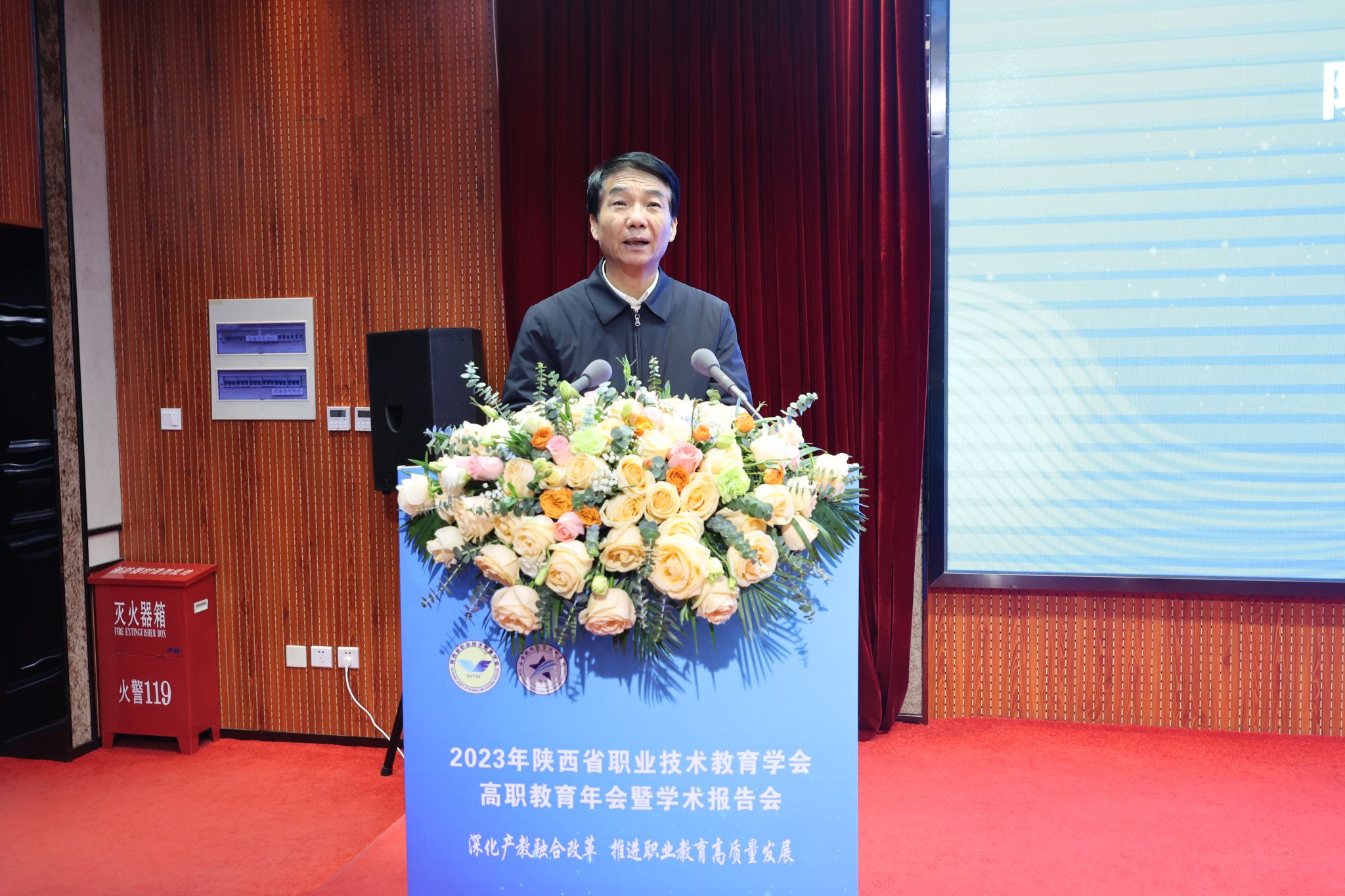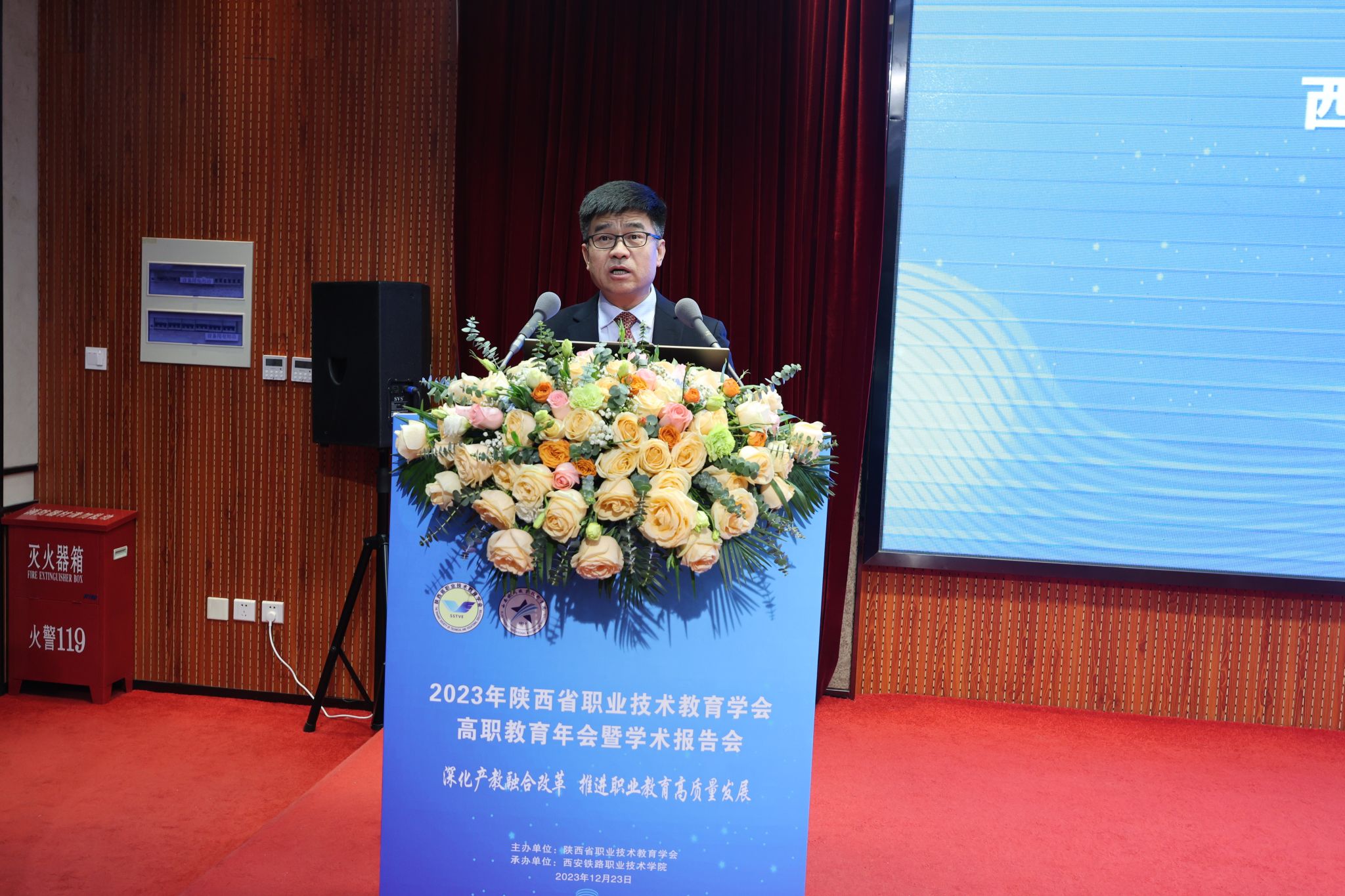 2023年12月23日,陕西省职教学会2023年高职教育年会暨学术年会在西安召开,本次会议由陕西省职教学会主办,ballBET贝博BB艾弗森承办。陕西省委教育工委委员、省教育厅副厅长申雪峰、职成教处处长王鹏,陕西省职业技术教育学会会长崔岩、全国高等职业学校校长联席会议主席、天津职业大学原校长董刚教授,中国高等教育学会职业技术教育分会理事长、浙江金融职业学院原党委书记周建松教授,中国职业技术教育学会副会长、天津大学职业教育研究所所长孙善学教授,中国职业技术教育学会副会长、机械工业教育发展中心陈晓明主任,中国高等教育学会职业技术教育分会专家委员会副主任、石家庄铁路职业技术学院原党委书记胡振文教授,中国建设教育协会副理事长、黑龙江建筑职业技术学院原党委书记王凤君教授以及陕西省职教学会二级委员会领导及相关会员单位代表、贝博官网党委书记施利民、校长赵春平以及贝博官网处科级干部等200余人参会。会议以“深化产教融合改革、推进职业教育高质量发展”为主题,由开幕式、学术报告会及院校交流三个阶段组成。