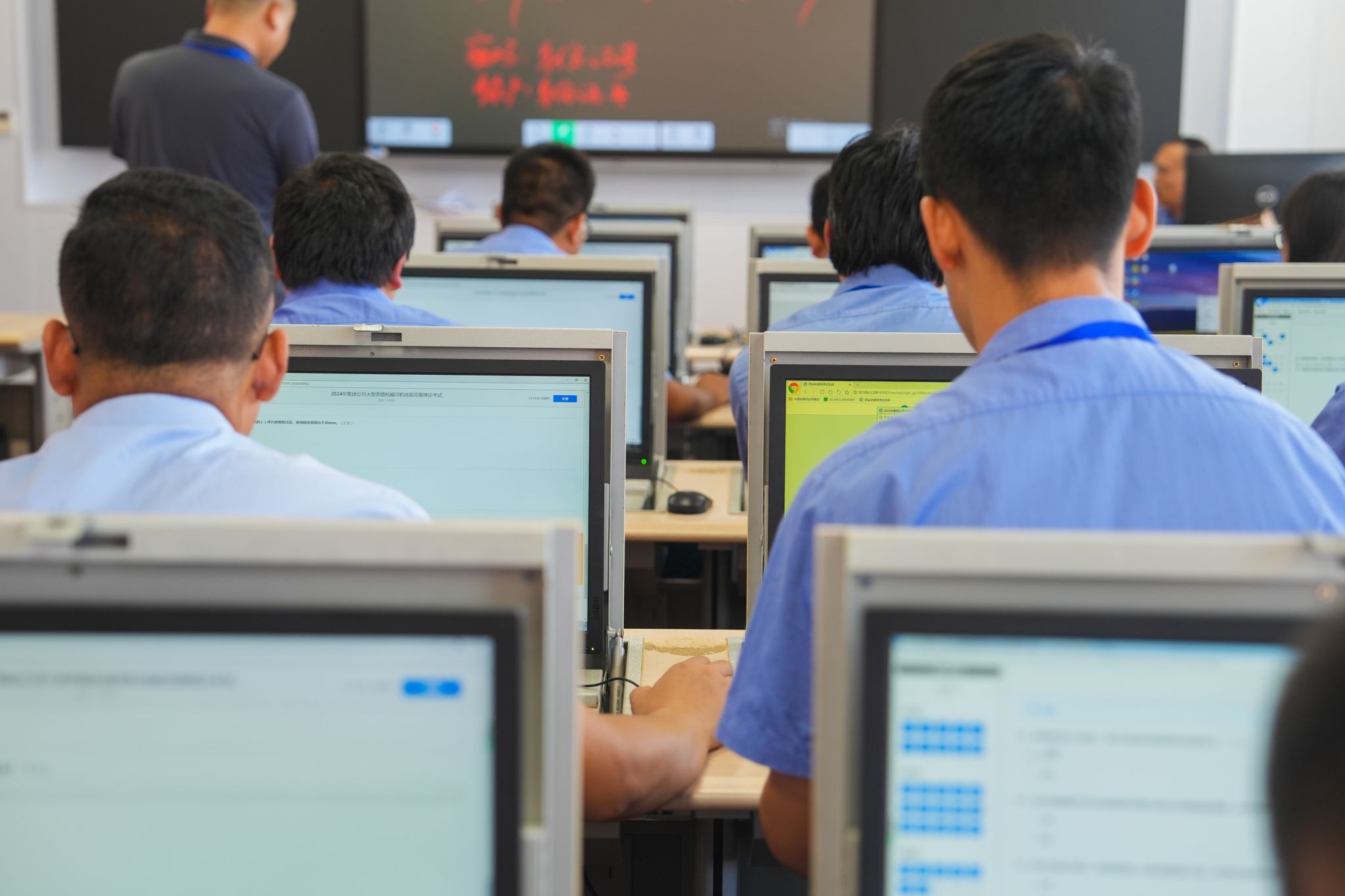 本次技能竞赛分为理论和实作两部分,综合考查大型养路机械检修作业和运行驾驶能力。理论考核范围为大型养路机械司机职业技能相关内容。采取闭卷考试,电脑作答。贝博官网教师担任理论竞赛监考人员。考场上,选手们冷静思考,认真作答,展现出扎实的理论功底。