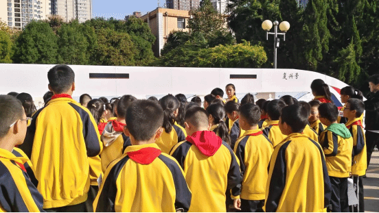 在詹天佑广场,红色讲解团成员向学生们讲述了中国铁路之父—詹天佑的故事,让学生了解了京张铁的修建过程,激发学生民族自豪感,树立民族自信心。
