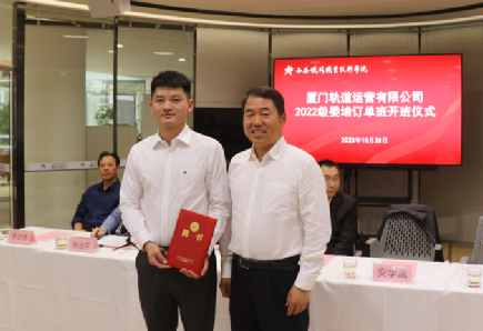 首先,邓轩书记代表学校对厦门地铁运营公司柯燕燕一行的到来表示热烈欢迎,向入选“厦铁”订单班的全体同学表示祝贺。他表示,学校与厦门地铁有着长期的合作关系,订单班的开设是双方深化合作的重要一步,也是学校培养高素质人才的重要举措。同时,为同学们提了三点希望和要求:一是希望订单班的同学们珍惜机会履行“厦门轨道准员工和西铁院学生”的双重职责,时刻以高标准严格要求自己;二是努力学习,提高技能。积极参加理论实训实践,不断提高自己的技能水平和职业道德素养,为将来的发展奠定基础;三是要练就吃苦耐劳、勤学恳干的精神,并注重体质锻炼,拥有健康强健的体魄,更好的适应未来的工作岗位。