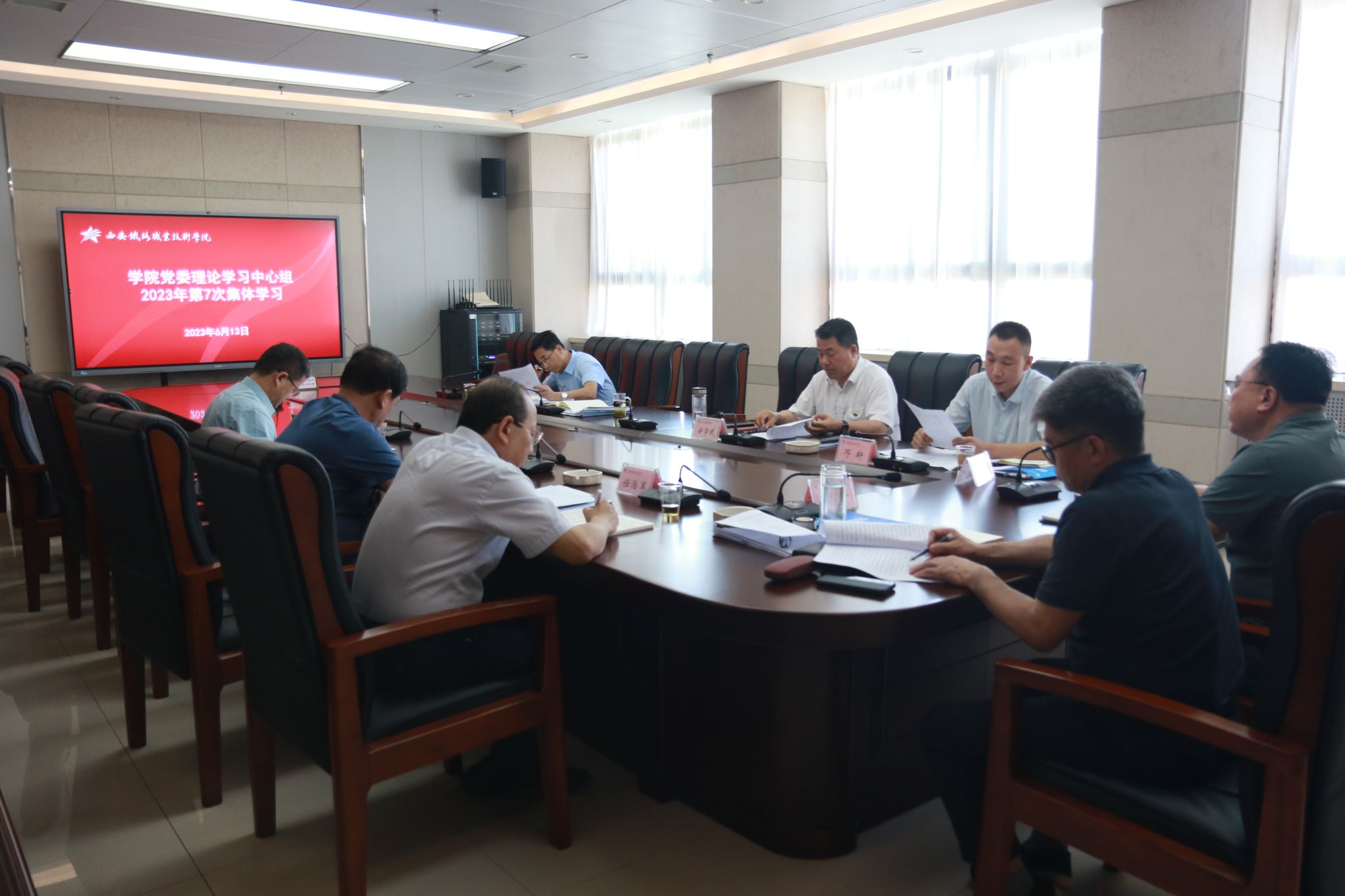 6月13日下午,学院党委理论学习中心组在港务校区举行学习会,领导班子成员及党政办公室、组织部、宣传部、纪检监察室负责人参加了此次集体学习,党委书记施利民主持学习会。