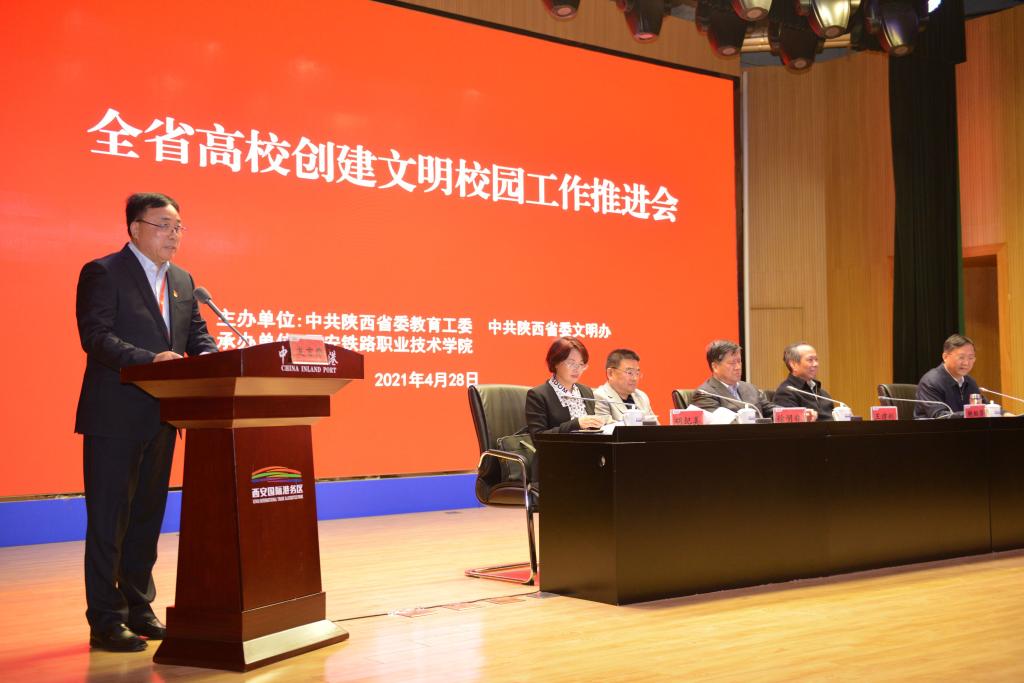 4月28日下午,由陕西省委教育工委、省委文明办联合主办的全省高校创建文明校园工作推进会在贝博官网顺利举行。省委教育工委书记王建利、省委文明办主任鲍贻勇、西安市副市长徐明非等出席会议。会议由省委教育工委、省教育厅二级巡视员高巍主持。