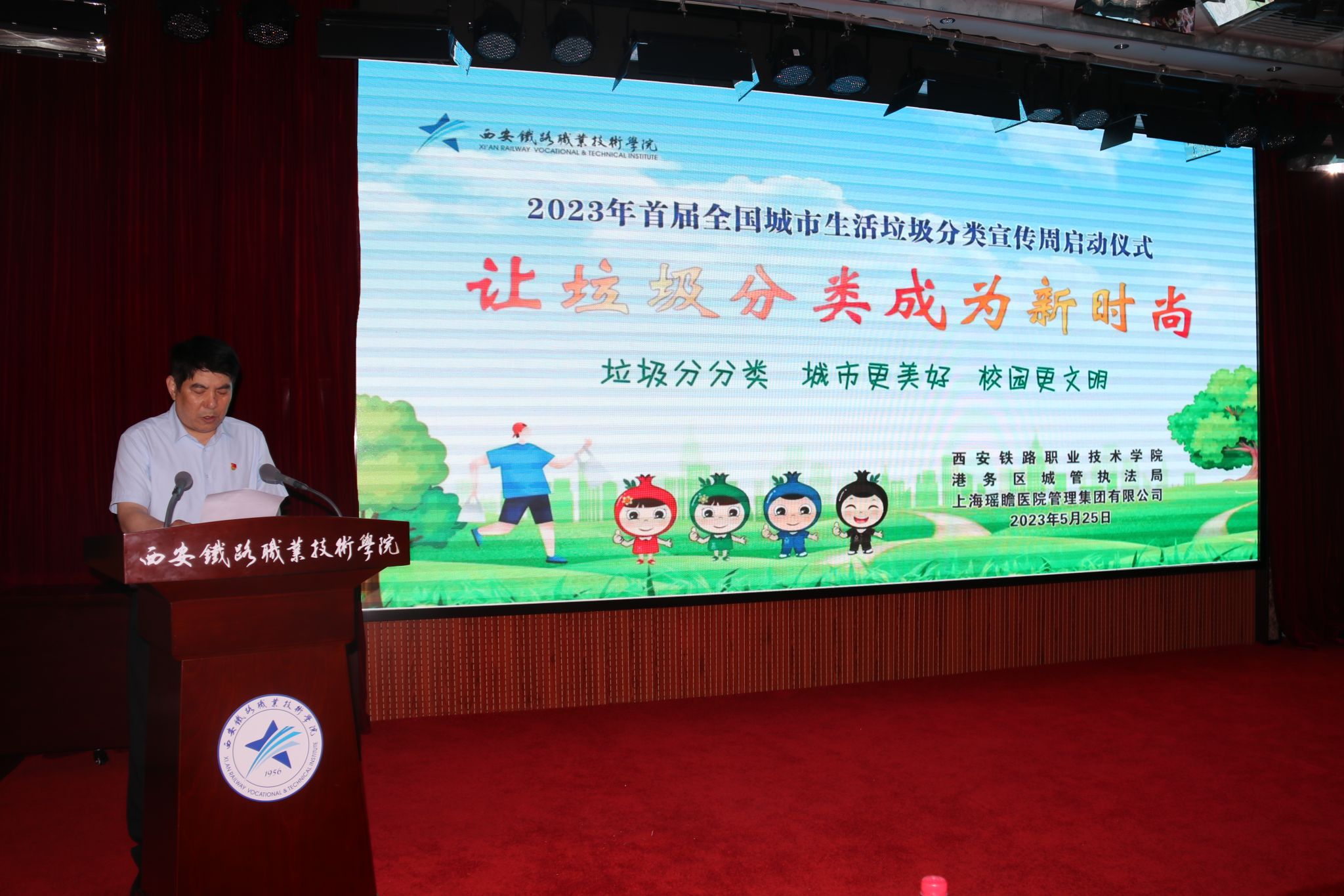 为进一步增强学生和教职工垃圾分类意识,引导大家树立绿色文明生活理念,5月25日下午16时,贝博官网“让垃圾分类成为新时尚”首届全国城市生活垃圾分类宣传周活动在港务校区学术报告厅启动。后勤基建处处长任卫东主持,学院党委副书记任治军讲话,党委学生工作部副部长李栋、学院团委书记李妮、上海瑶瞻医院管理集团有限公司(与学院签约的保洁公司)工作人员和师生200人参加了启动仪式及相关活动。