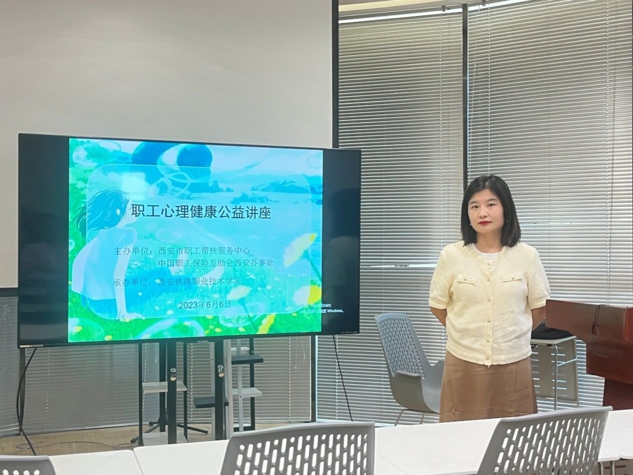 为提升教职工在日常工作生活中对自身情绪变化和心理状态的调节能力,构建和谐安全、健康向上的校园氛围,2023年6月6日下午,院工会举办教职工心理健康知识公益讲座。本次讲座邀请西安工会医院精神科医生李清华老师主讲,学院60余名教职工参加讲座。