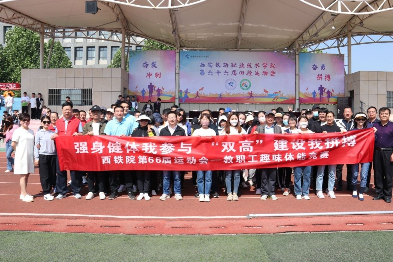 4月27日,在学院第66届运动会上,学院工会组织教职工开展了以“强身健体我参与 双高建设我拼搏”为主题的趣味体能竞赛,近三百名教职工参加了活动。