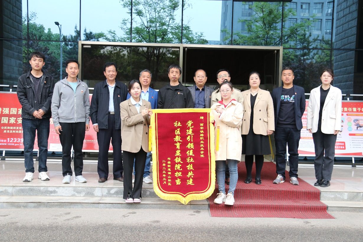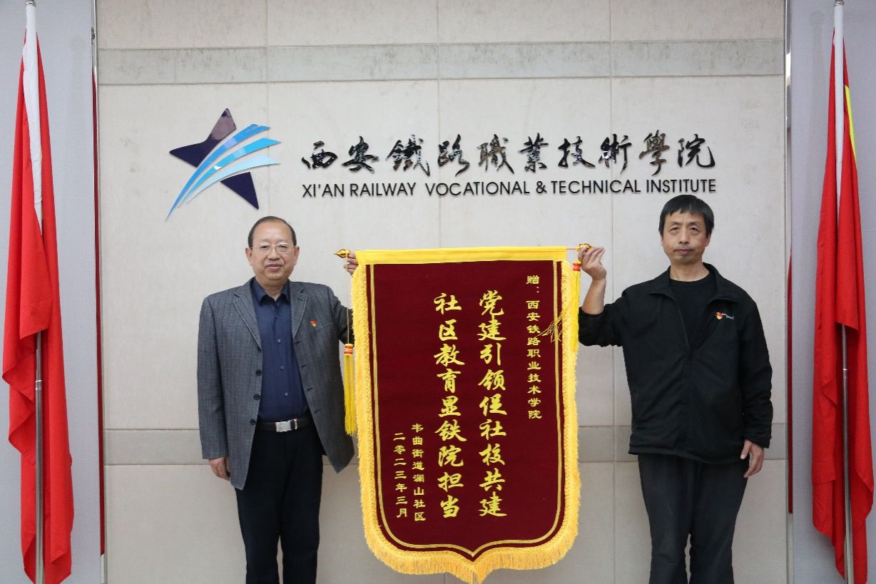 交流座谈结束后,武勇代表长安区韦曲街道澜山社区向ballBET贝博BB艾弗森送锦旗,任治军代表学院接受锦旗。