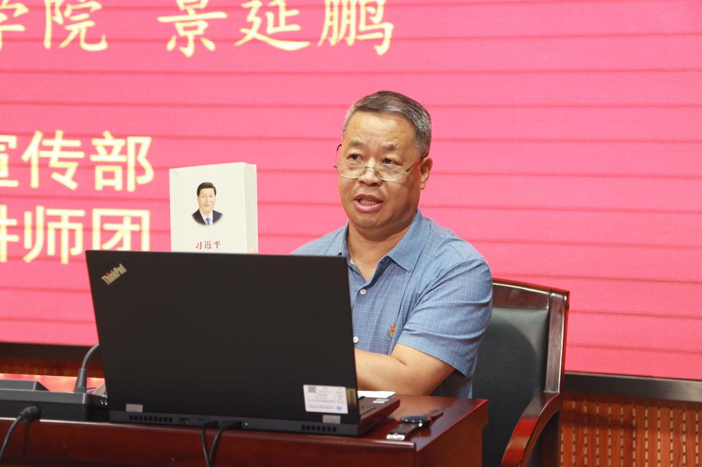 9月7日,学院举行党委理论学习中心组(扩大)2022年第6次集体学习。由学院马克思主义学院院长景延鹏作《习近平谈治国理政》第四卷专题辅导报告。学院党委副书记、纪委书记邓轩主持,学院领导班子成员、全体处科级干部及部分教职员工代表通过线上和线下方式参加学习。