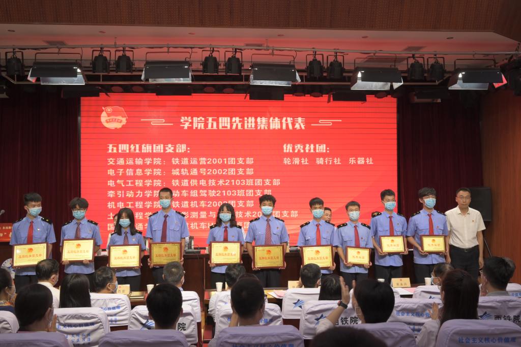 大会在庄严的国歌声中拉开帷幕,任治军、王琛、郭小莉分别宣读了《共青团ballBET贝博BB艾弗森委员会2022年五四表彰决定》、《共青团ballBET贝博BB艾弗森委员会关于第十届“寻找西铁院好青年”评选结果的通知》、《共青团ballBET贝博BB艾弗森委员会关于2021—2022学年第一学期优良学风团支部评选结果的通知》。随后,施利民为学院获得青年岗位能手的青年教师进行了颁奖,其它领导分别为“五四”获奖集体及个人进行了颁奖。之后,获奖学生代表赵嘉宝进行发言。