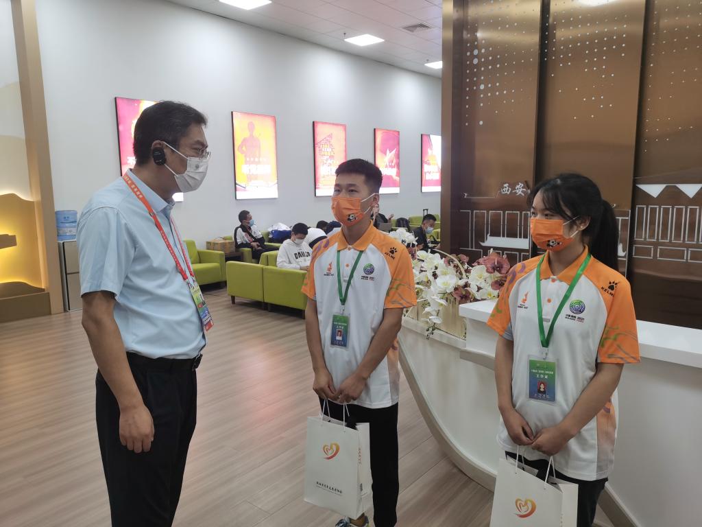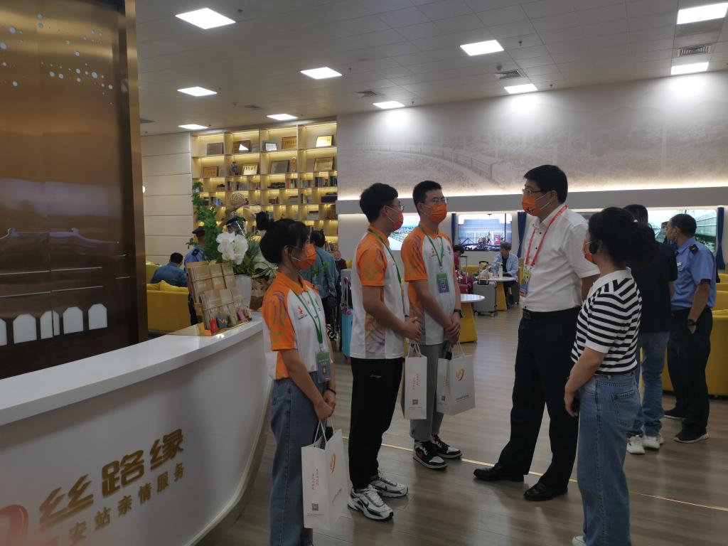 9月20日,团省委副书记、十四运会和残特奥会组委会志愿服务部驻会副部长鲁镇,团省委青年社会事业部部长、十四运会和残特奥会组委会志愿服务部部长助理张路,省青年志愿者协会会长苗阜等一行来到西安站调研站点服务情况并看望慰问贝博官网十四运会城市志愿者。中国铁路西安局集团有限公司团委副书记刘玲、学院团委副书记李妮等陪同。