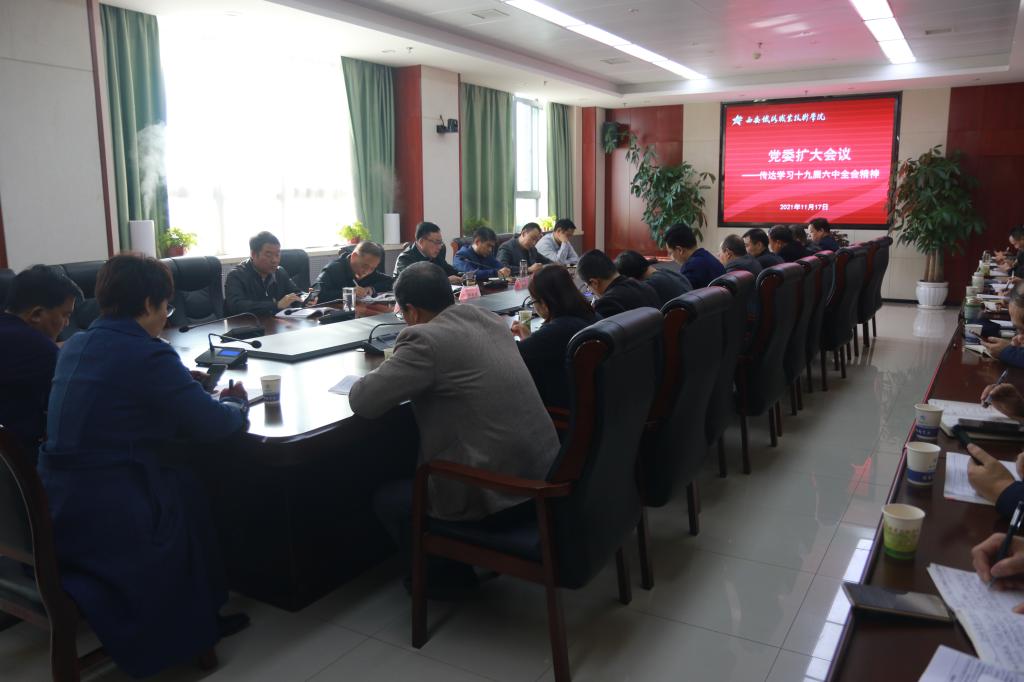 11月17日,学院召开党委(扩大)会议,深入学习党的十九届六中全会精神。党委书记施利民主持并传达党的十九届六中全会精神,对抓好宣传学习贯彻党的十九届六中全会精神工作作出部署。学院领导、处级以上干部参加会议。