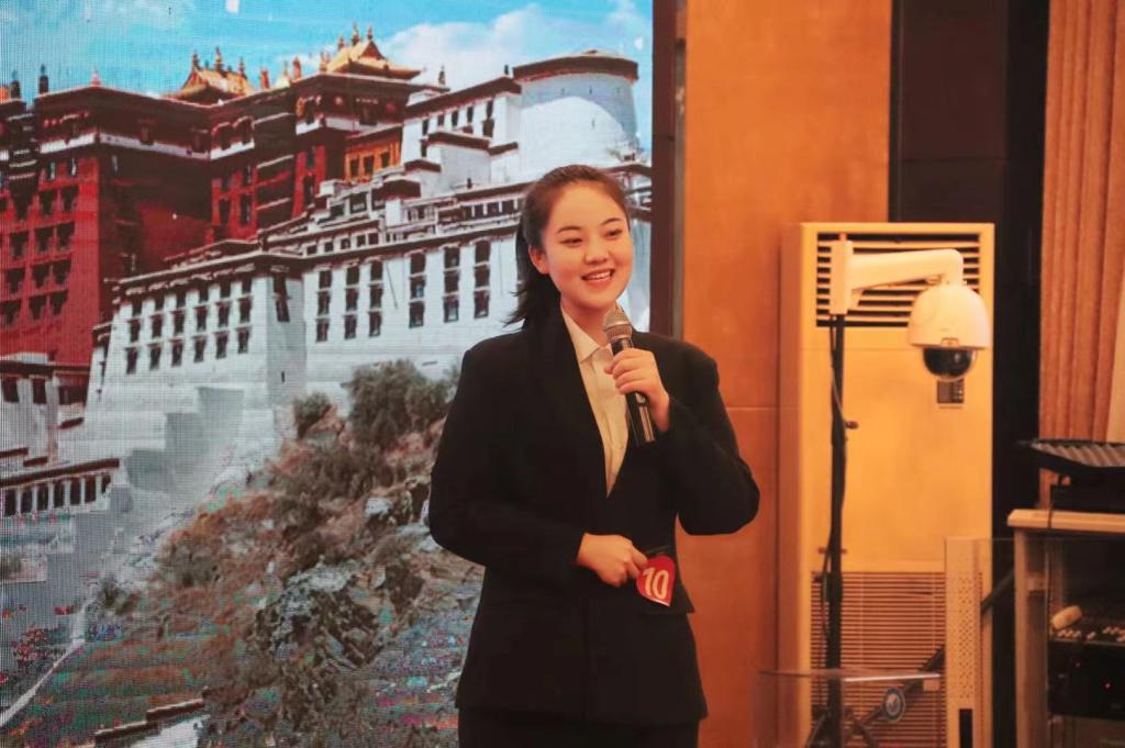 决赛现场,张王琦、赵欣怡、朱镕琪团队以《回望七十载改天换地 坚守一百年初心使命》为题,回望七十年来西藏自治区创造的一个又一个奇迹,重点讲述了青藏铁路在推动西藏经济发展的重要意义,生动地诠释了只有中国共产党才能带领全国各族人民过上好日子。