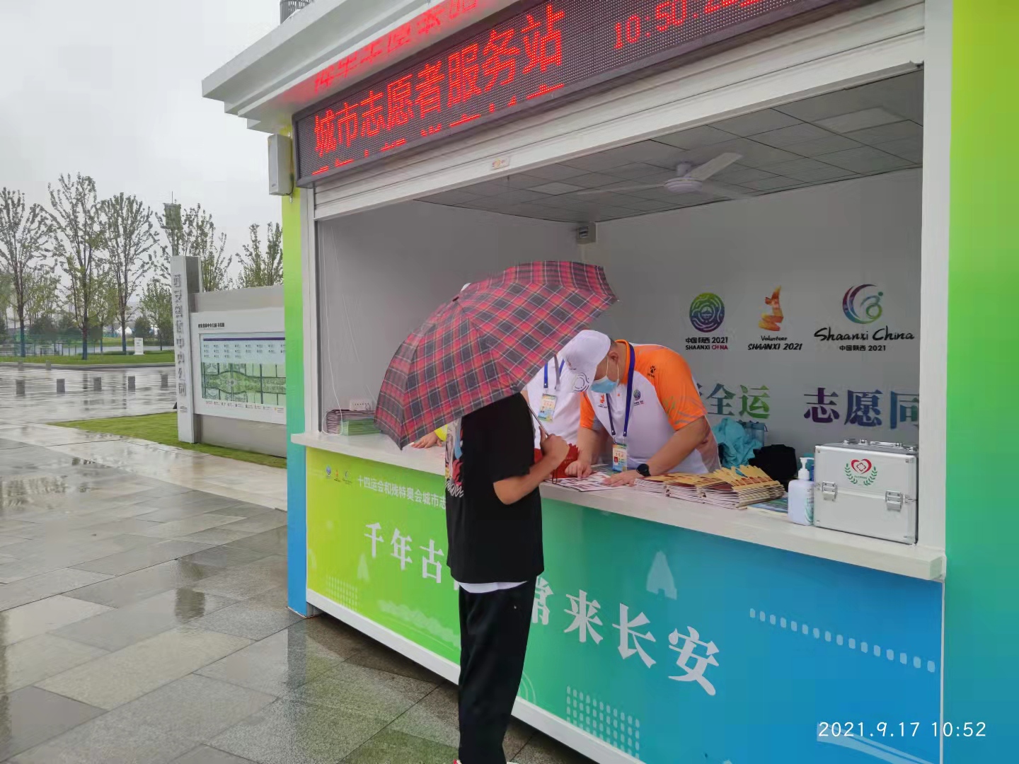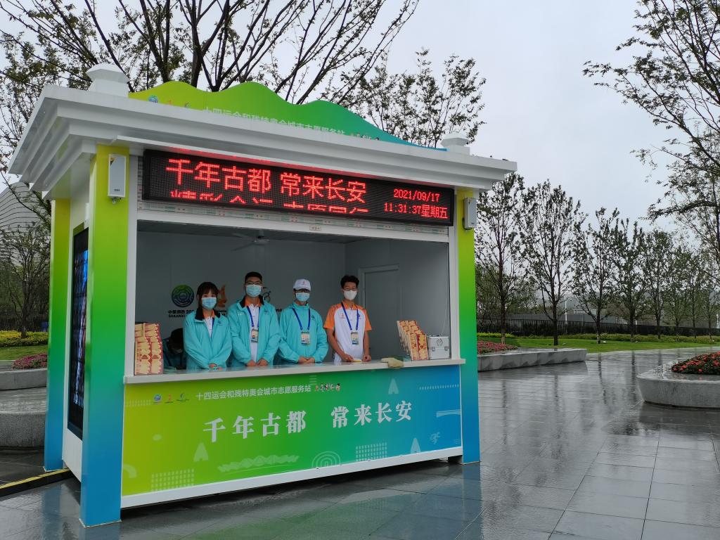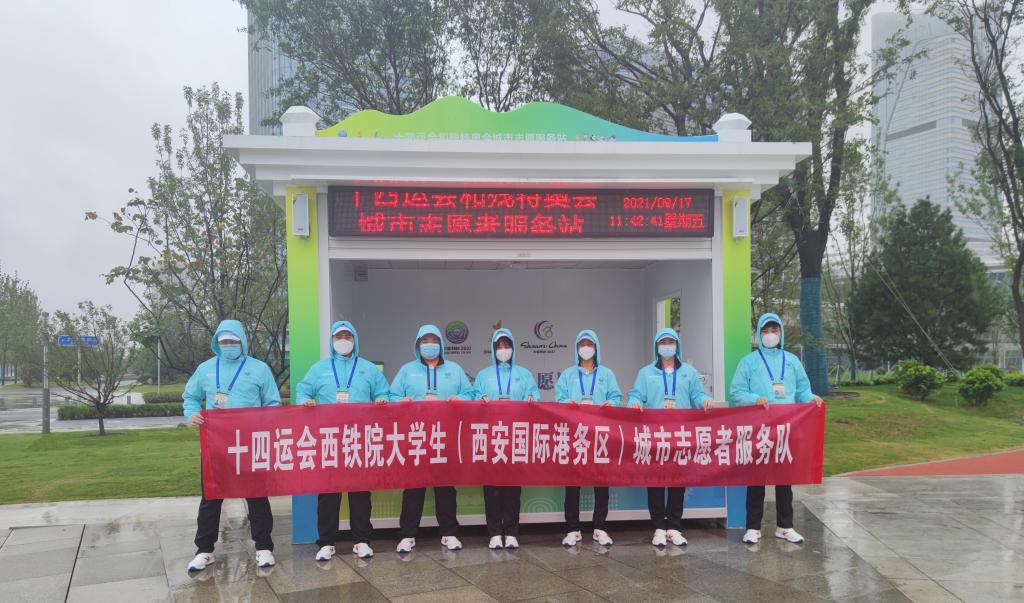 9月17日,学院服务于西安国际港务区的第一批28名城市志愿者正式上岗,志愿者们在十四运会主场馆奥体中心附近的志愿者岗亭,为来自全国各地的旅客们提供购票咨询、场馆路线指引、重点旅客关怀等服务,147名西安国际港务区的城市志愿者于9月17日至11月15日分组上岗,以认真负责、积极向上的精神风貌向全国的旅客们做好各项志愿服务。