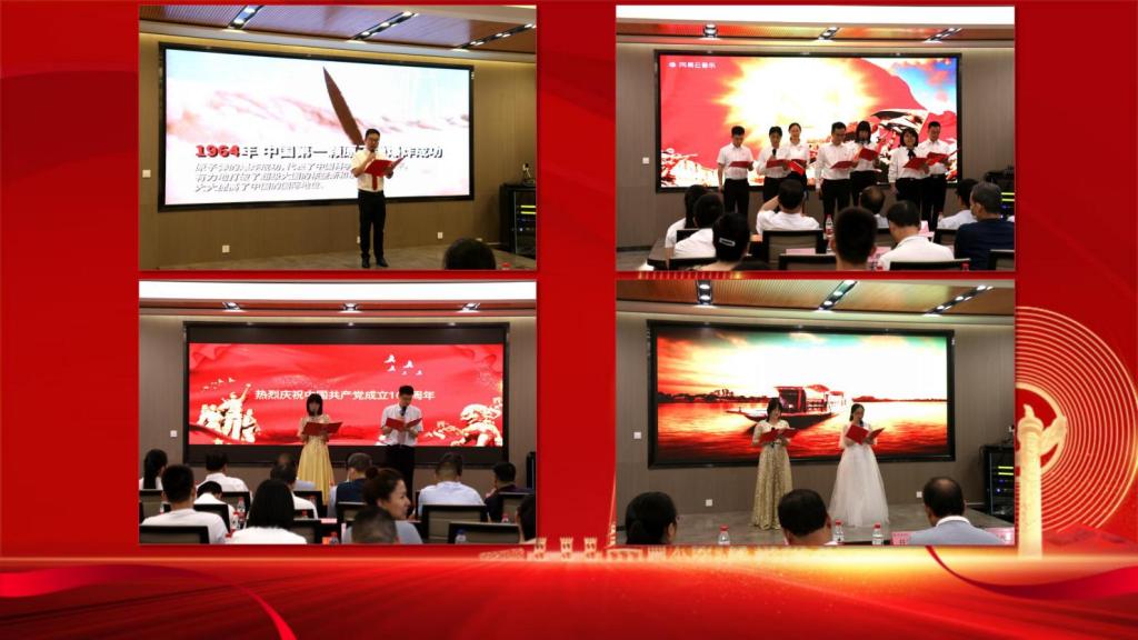 百年风云激荡、百年苦难辉煌,诵读活动在教学综合党支部朗诵的《不朽》中拉开帷幕。校区党员师生相继朗诵了《冰封的烈火》《以朱德之“德”,诠释忠诚廉洁担当》《黄河》《红船的方向》《献给党的生日》《生命之花》《党旗不倒,中华不屈》《中国的微笑》《红色征途》等经典红色诗歌。最后,综合、基础党支部朗诵的《青春中国》将整个诵读活动推向了高潮,赢得了满堂喝彩。校区党员师生用慷慨激昂的诗篇、荡气回肠的韵律、饱含深情的歌颂,表达了对党的百年华诞最诚挚的祝福,抒发了对党和国家的无限热爱、对中华民族伟大复兴的坚定信心。