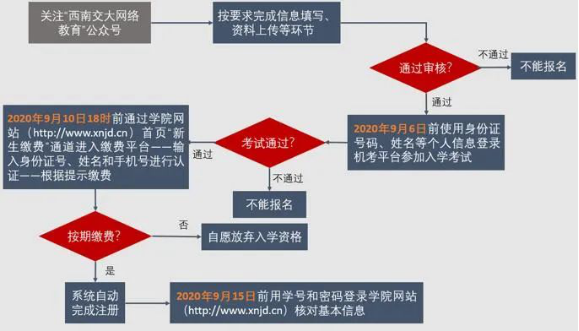 3.通过入学考试的考生须在2020年9月10日18时前,由本人自行登录西南交通大学自助缴费平台缴费,严禁由学习中心代收、代缴学费。考生完成缴费后方可录取注册为学院正式学生,未按期缴纳学费的考生,视为自动放弃入学资格。