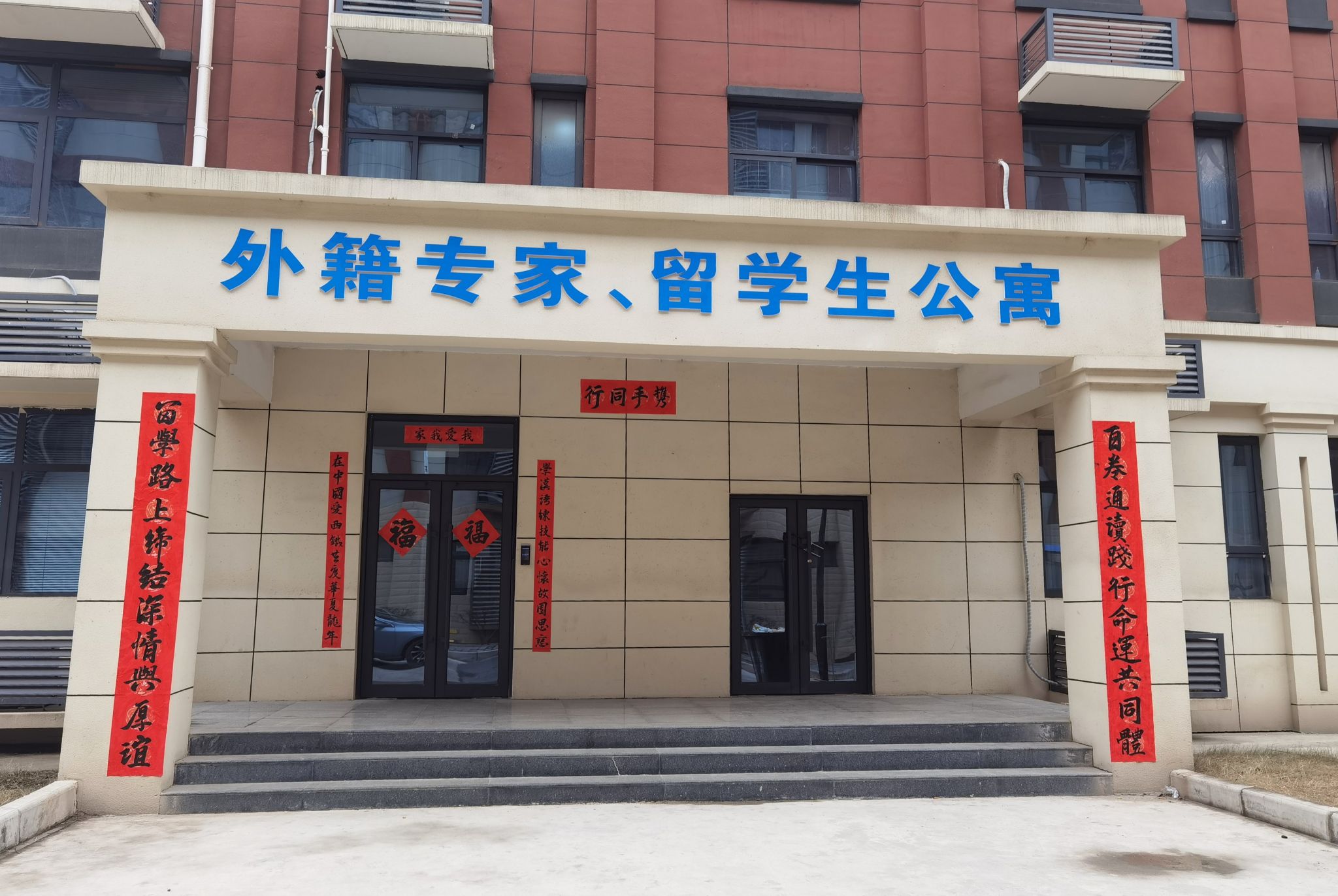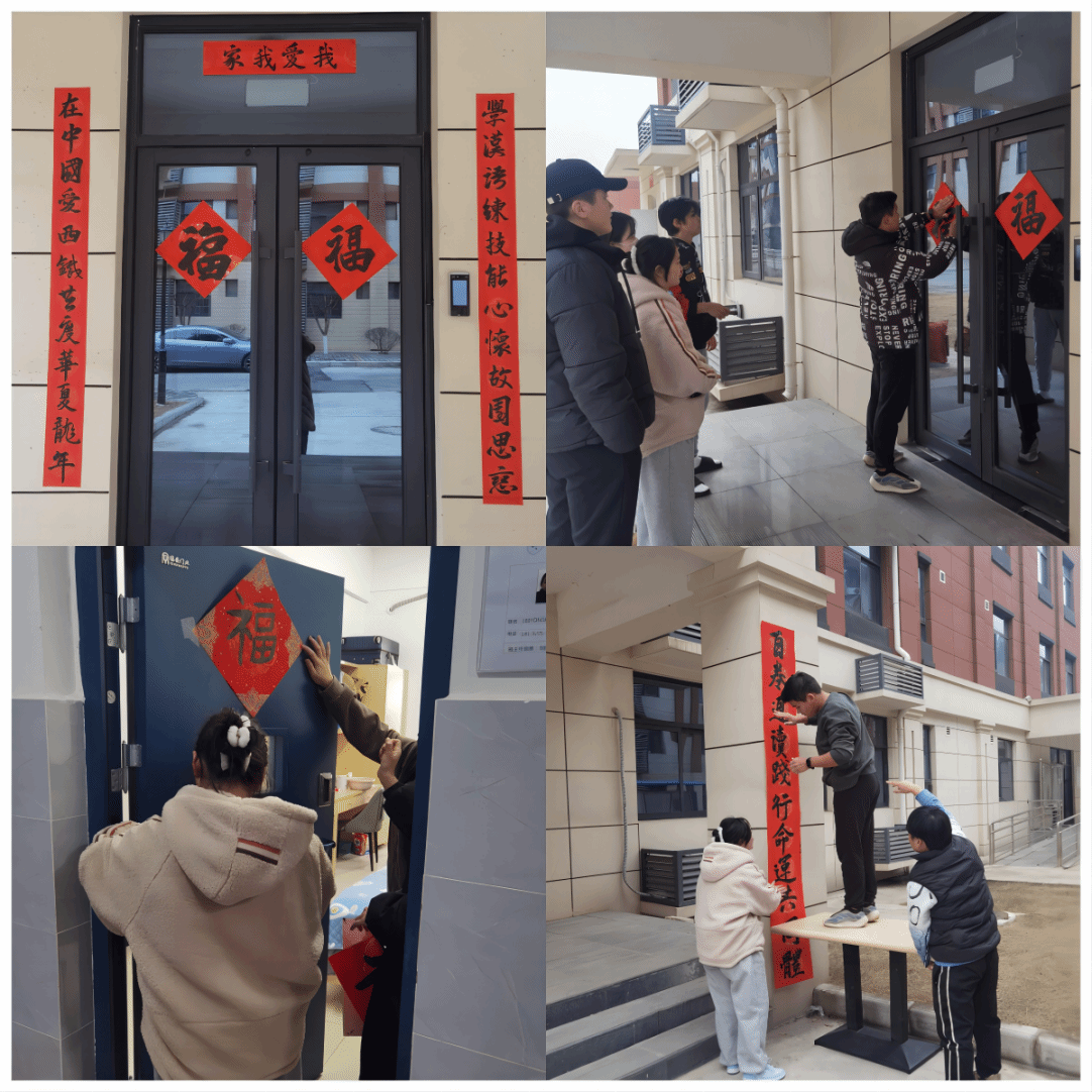 留学生们在中国学生的指导下,一笔一划地书写着“福”“欢度春节”“笑口常开”等新年祝福语,还有留学生用母语书写新年祝福。随后,中、外学生一起将寓意深刻、祝福满满的春联贴在公寓门口,并用彩灯、中国结、气球等装饰楼道,在宿舍门上贴上自己写的“福”字,在窗户上贴上剪纸窗花,使公寓内外充满了喜庆祥和的新年氛围。