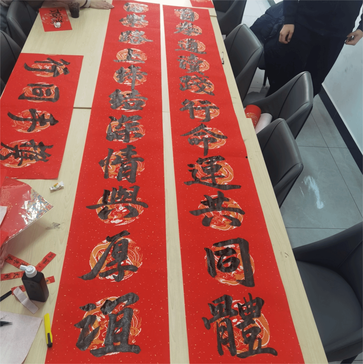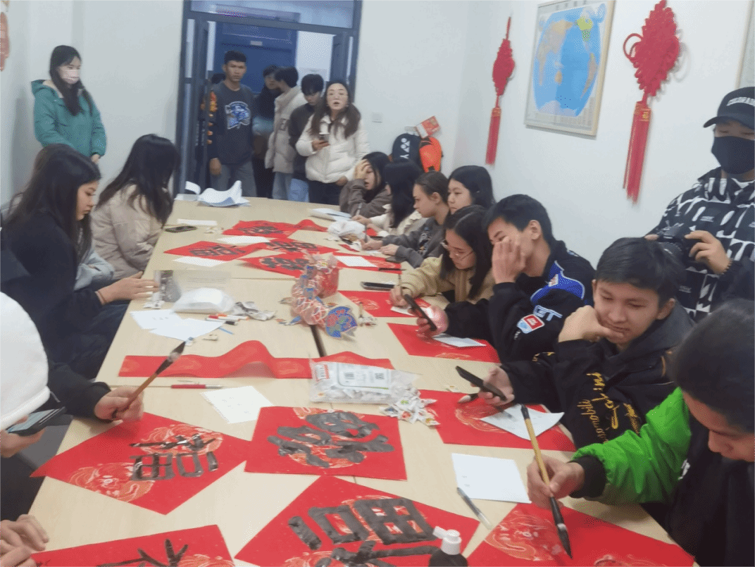 2月5日,国际交通学院在留学生公寓举办中、外学生“写春联、迎新年”主题活动,让来自老挝、哈萨克斯坦、吉尔吉斯斯坦的24名留学生在中国民俗文化的深入体验中感受浓浓的中国年味。活动由国际交通学院副院长靳丽君、留学生生活老师乔树玲、书法社成员凌月同学、学生干部王福林、冯嘉轩、唐伟斌等同学共同组织。