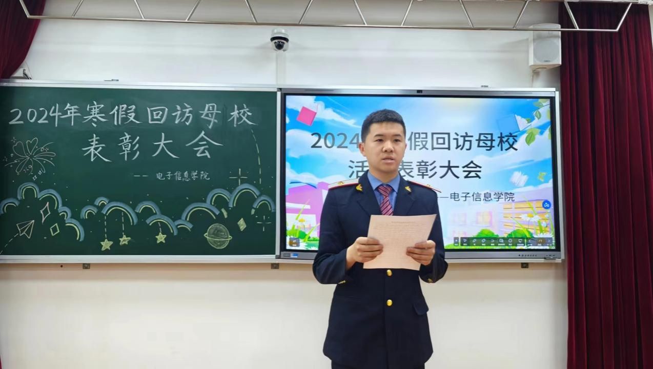 2月29日,电子信息学院团总支在教学楼407教室举行了回访母校招生宣传表彰大会,电子信息学院组织员胡士亮、团总支书记畅伟宁、班主任辅导员及全体寒假回访母校的优秀学生参会。