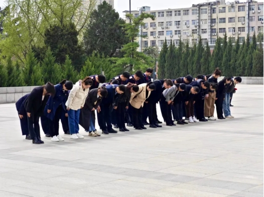 活动现场,全体人员庄严肃立,向为中国人民解放事业和共和国建设事业英勇献身的先烈默哀。默哀毕,王秀丽书记与邢卫红副院长一同为革命先烈敬献花篮,并带领在场师生三鞠躬,致以崇高敬意。
