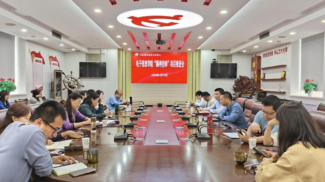 4月19日下午,电子信息学院在自强校区第三会议室召开“揭榜挂帅”项目推进会,电子信息学院院长董奇、办公室主任高琳、副主任杨星及全体揭榜人参会,会议由副院长冯国良主持。