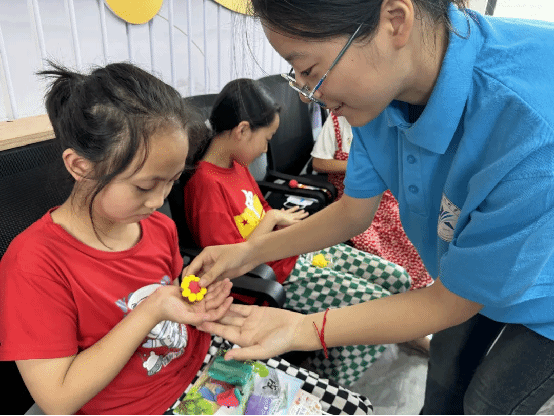 在温馨的氛围中,大学生志愿者们还引导孩子们开启了创意无限的手工涂绘DIY之旅。他们分发材料,耐心指导,让小朋友们充分发挥自己的想象力和创造力,用五彩斑斓的画笔勾勒出心中的梦想与希望。一件件精美的手工作品在孩子们的手中诞生,不仅展现了他们的艺术天赋,更增进了彼此之间的友谊与默契。