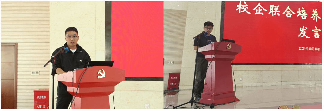 学院优秀校友王欢分享了自己在企业的成长心得,学生代表薛听松代表此次校企联合培养学生发言。