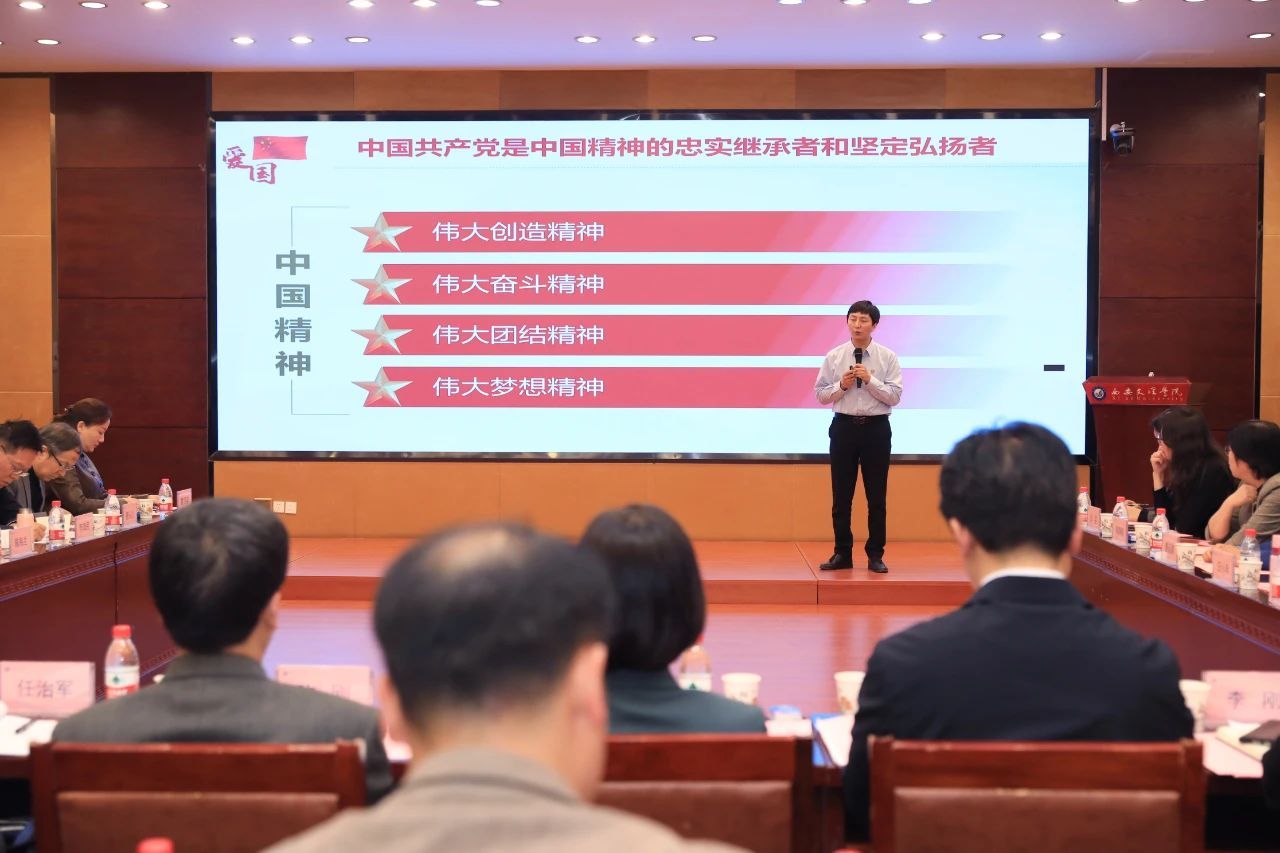 在此次市级优秀成果展示活动中,邢星以《中国共产党是中国精神的忠实继承者和坚定的弘扬者》为题,结合当代青年的实际,以革命年代、建设年代、改革开放以来和新时代的优秀共产党员代表为例,来阐释“中国精神”中伟大的创造精神、奋斗精神、团结精神、梦想精神的内涵,在现场呈现了一堂的有“知”有“味”的思政课。